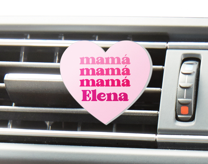 Dale un toque único y lleno de cariño al coche de mamá con este adorno para aire acondicionado personalizado en forma de corazón. Con su diseño colorido, este adorno no solo hará que su coche se vea más bonito, sino que también añadirá un toque de alegría a cada uno de sus viajes. Cada vez que lo vea, recordará lo especial que fue el Día de la Madre o su cumpleaños, y el detalle tan bonito que le regalaste. Este adorno decorativo de metacrilato es muy fácil de colocar gracias a su clip, que se adapta perfectamente a la rejilla de ventilación del coche. Y lo mejor de todo: puedes personalizarlo con el nombre de mamá, convirtiéndolo en un regalo único y lleno de significado. ¿Qué mejor manera de sorprenderla que con algo tan especial y personal? Personalizar este este adorno original para coche es muy sencillo. Añade el producto al carrito y añade el nombre de tu madre. Con solo unos pasos, tendrás el regalo perfecto para mamá, ideal para cualquier ocasión o simplemente para recordarle lo mucho que la quieres. Importante: Este adorno es un elemento decorativo y está diseñado exclusivamente para colocarse en la rejilla de aire acondicionado del coche.