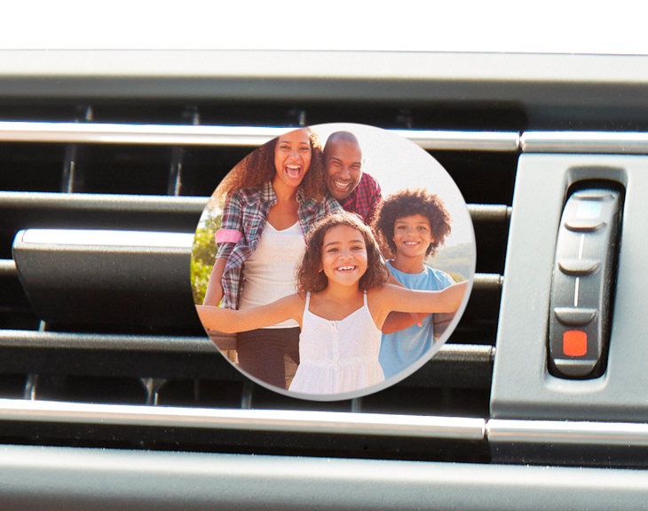 ¿Te gustaría llevar siempre contigo a las personas que más quieres? Con nuestro adorno para aire acondicionado personalizado ¡será posible! Solo tienes que elegir tu foto favorita y tenerla siempre a tu lado mientras conduces. ¡Será el toque perfecto para tu vehículo! Este original adorno de metacrilato incluye un clip para colocarlo fácilmente en la rejilla de ventilación. Así, podrás darle un toque personal a tu coche y disfrutar de recuerdos especiales en cada trayecto. Ya sea en tus viajes diarios o en esas largas horas de ruta, siempre tendrás a tus seres queridos cerca. Personalizar este adorno para coche es muy fácil. Solo tienes que añadir el producto al carrito, entrar al área de personalización y cargar tu foto preferida ¡Enseguida lo tendrás listo para regalar o para ti mismo! ¡Será un original regalo para el coche lleno de significado! Importante: El adorno es un elemento únicamente decorativo.