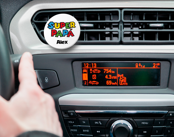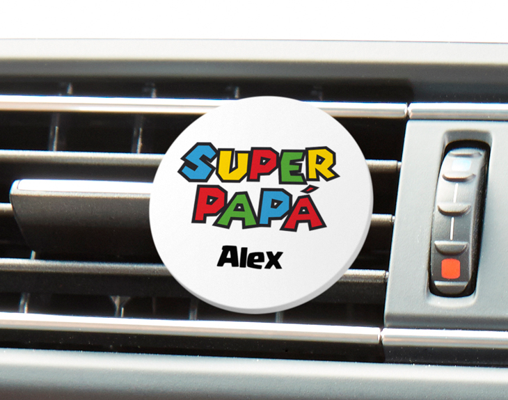 ¿Papá es el héroe de la familia? ¿Es el encargado de salvar el día en cada aventura? ¡Tenemos el regalo perfecto para sorprenderlo en su día! Nuestro adorno para aire acondicionado personalizado con un diseño "Super Papá" inspirado en el mundo de Mario Bros. Será el detalle más original y divertido que haya recibido. Con este original adorno, tu padre se sentirá en su coche como si fuera un auténtico personaje del universo de Mario Bros. ¡Un diseño único que le hará sentirse como el héroe de la familia! Seguro que le encantará ver cómo se convierte en el protagonista de su propio videojuego. ¡Será un regalo original para el coche de papá! Este adorno de metacrilato incluye un clip para colocarlo fácilmente en la rejilla de ventilación. ¡Y personalizarlo es muy fácil! Solo tienes que añadir el producto al carrito, presionar el botón de "personalizar" y escribir el nombre que quieras. Nosotros nos encargaremos de que tengas el mejor regalo para el Día del Padre listo a tiempo. Importante: El adorno es un elemento únicamente decorativo.
