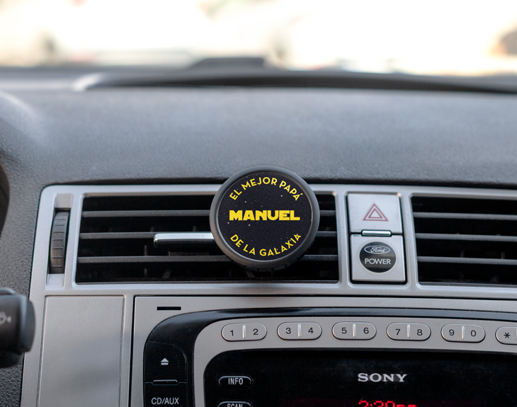 • Ambientador aire acondicionado coche personalizado. • Tarjeta recordatoria.