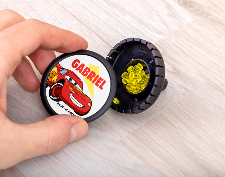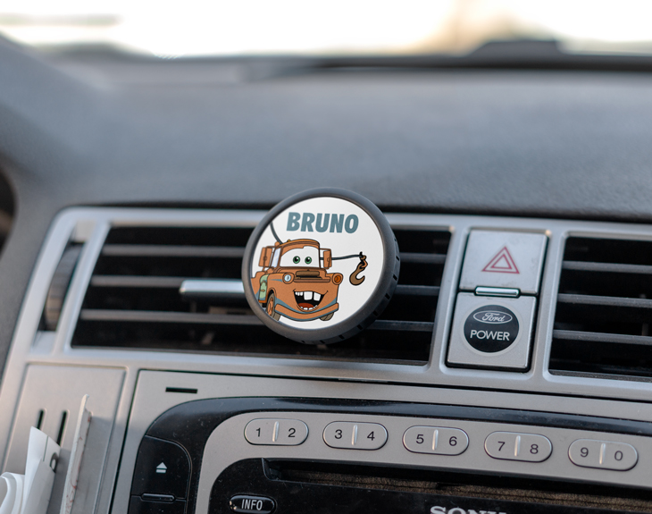 ¿A quién no le encanta la icónica película de Cars? Sabemos que a pesar de que han pasado unos años, sigues viéndola con la misma ilusión que cuando eras pequeño y volvías por la tarde del cole. Si buscas un regalo original que te traslade a esa época y que te reviva buenos momentos, esta idea será la opción perfecta. Sorprende a esa persona especial con este ambientador para el coche, que además puedes personalizar con su personaje favorito de la película y con su nombre, haciendo que se sienta como el ganador de la Copa Pistón. Es del tamaño perfecto para que pueda ponerlo y lucirlo a todo el que se suba, además de estar rodeado de un fresco y agradable aroma a limón. Para incluir el nombre de esa persona especial, solo tendrás que agregarlo al momento de realizar el pedido a través de nuestra página y de esta manera ya se incluirá en el diseño del personaje que hayas elegido. ¿Eres más de Rayo McQueen o de Mate? Importante: las perlas del ambientador están metidas en una bolsita. Para que el aroma sea más intenso, te recomendamos abrirla. Además, una vez gastadas, puedes reutilizarlo añadiendo nuevas perlas con tu olor favorito. Aroma: Limón. Medidas: 5 cm x 5 cm.