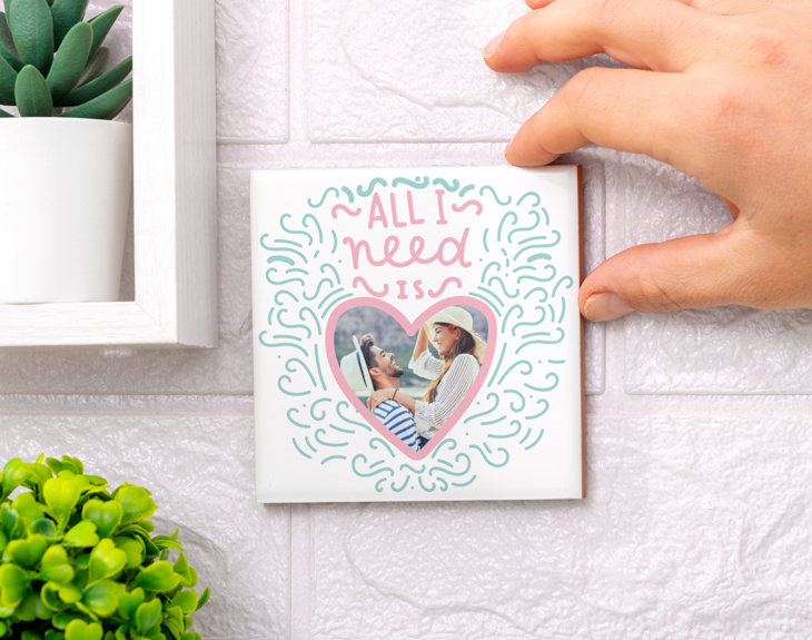 Los azulejos molan mucho. Llevan con nosotros muchos años y ya forman parte de nuestra historia. Desde hace mucho muchos años este característico elemento era muy común en los pueblos. ¿Por qué? Pues porque además de decorar el interior de las viviendas, se colaban fuera para que la gente supiera quién vivía en esa casa. En el azulejo aparecía el nombre o apellido de la familia y era muy útil porque así todo el mundo sabía de quién era cada caso. Si esto te trae recuerdos, puedes tener tu azulejo personalizado para decorar cualquier rincón de la casa y que sea único. Este azulejo o baldosa no pasará desapercibido donde lo pongas. Todos tus invitados lo verán y querrán uno igual. Además, este original azulejo tiene un diseño de lo más romántico y bonito. "All you need is... love" o eso dicen. El amor es lo único que necesitamos y muchas veces es cierto. Este precioso diseño se compone de esta frase que está sin acabar para finalizar en un corazón grande que podrás personalizar. Y para hacer este regalo único, tendrás que personalizar tu azulejo. Elige la foto que quieras para que aparezca en el corazón de este precioso azulejo con un diseño lleno de amor y color. Será perfecto para adornar cualquier rincón y que esa persona tan especial siempre se acuerde de ti. Este producto incluye una base transparente para que pueda mantenerse en pie sobre las superficies de la casa. También puede ir pegado a la pared para darle un toque distinto a tu decoración. Medidas: 10 x 10 cm. Material: Cerámica. Medidas: 20 x 20. Material: cerámica. Peso: peso: 538g. Guía de mantenimiento: -No exponer a condiciones climatológicas adversas. Este azulejo tiene fines decorativos, es un producto de interior. -No utilizar como azulejo de obra. No es recomendable utilizarlo en reformas u obras, ya que es un elemento decorativo. -No lavar con productos corrosivos. Puede dañar la calidad del diseño y reducir su durabilidad. -No frotar. Es recomendable no limpiar el azulejo con ningún tipo de producto líquido o con demasiada fuerza, ya que puede dañar el diseño.
