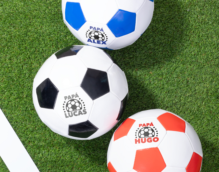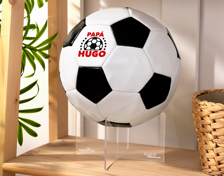 ¿A papá le encanta el fútbol? ¡No digas más! Tenemos el regalo perfecto para dejarle sin palabras: su propio balón de fútbol personalizado. Le encantará porque podrá llevarlo donde quiera y jugar con su familia o amigos en sus ratos libres. Así, nunca perderá este balón porque podrás añadir su nombre si quieres y hacer que sea el regalo más guay del mundo. ¡Le encantará! Este original regalo es ideal para el Día del Padre o para su cumpleaños, porque si de verdad es fanático del fútbol, no hará un regalo que le haga más ilusión que este. Además, podrás personalizar su diseño como tú quieras y elegir el color que más le guste a papá: negro, azul o rojo. ¡Es una difícil decisión! Este súper balón es personalizable por lo que si accedes a nuestro diseñador podrás personalizarlo a tu gusto. Nosotros te dejamos este diseño tan chulo y tú solo tienes que completarlo con el nombre de papá o el texto que quieras. Quedará genial y es perfecto para los papis más futboleros. ¡Es lo más! Material: PVC. Grosor del PVC: 1,6 mm. Medidas: 25 cm. Peso: 260 - 280 gramos.