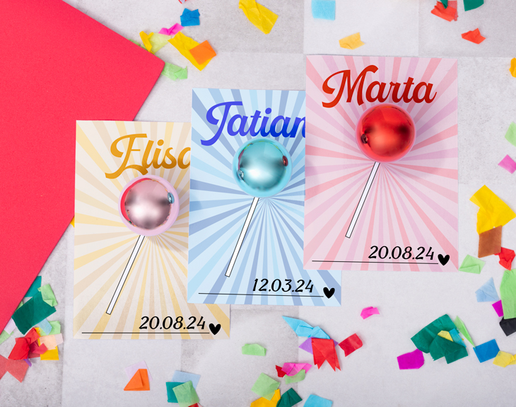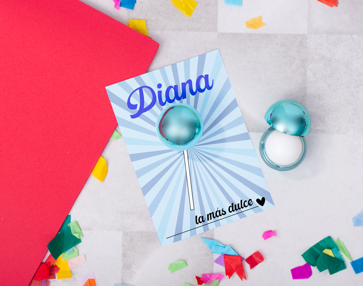Seguro que dentro de poco se acerca un cumpleaños, una boda, un aniversario o quieres celebrar el amigo invisible. Cualquier fecha es perfecta para regalar nuestra tarjeta personalizada con bálsamo labial porque es lo más. Si estás buscando un regalo original, divertido y que también sea útil, este es justo lo que necesitas. Este original detalle es ideal para dejar sin palabras a esa persona tan especial y es que le estarás regalando de una manera súper diferente un bálsamo labial muy chulo. Si la persona que lo va a recibir es un poco golosa y amante de las chuches, su diseño de chupachups le va a encantar. ¡Es genial! Para personalizar esta tarjeta solo tienes que entrar en nuestro diseñador y seguir algunos pasos. El primero es elegir el color del bálsamo (azul clarito, dorado, naranja, azul oscuro, rosa o rojo) y después podrás dejar volar tu imaginación y personalizar el diseño de la tarjeta con el texto que quieras. ¡Será un regalo único! Medidas de la tarjeta: 14 x 10 cm.