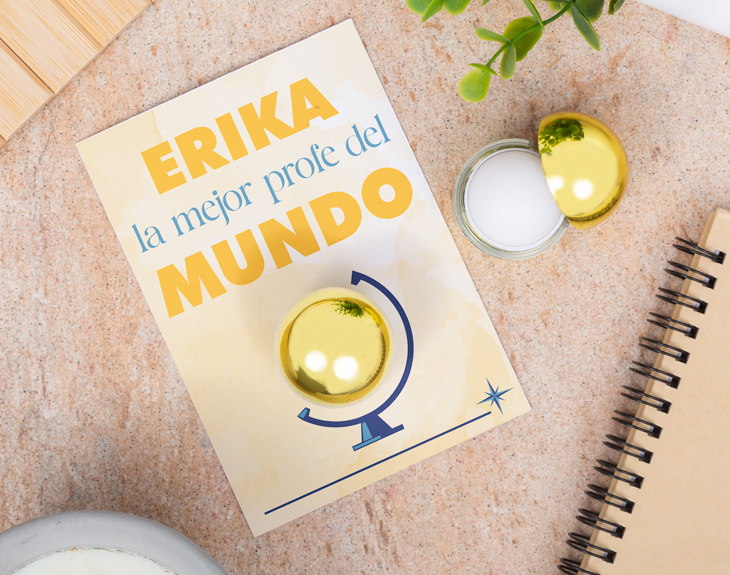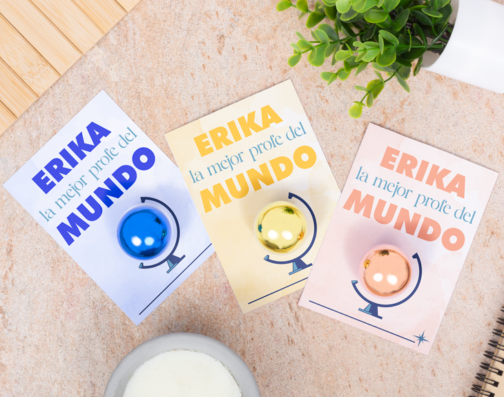 Tenemos la forma más original de demostrarle a vuestro profe que es el mejor del mundo, con nuestra tarjeta personalizada con bálsamo labial con diseño "Mejor profe del mundo", será la forma más original de todas. Además, es perfecta como un regalo de despedida para cuando llegue fin de curso. ¡Le encantará! Este bálsamo labial es perfecto para mantener nuestros labios bien hidratados y evitar que estén resecos. Además, lo mejor que tiene esta tarjeta es que es personalizable, podrás escribir el nombre del mejor profe del mundo. Imagina la ilusión que le hará recibir este regalito tan especial, sin duda, se quedará sin palabras. ¡Nunca se olvidará de su clase favorita! Personalizar esta tarjeta con bálsamo labial es muy fácil. Entra en nuestra área de personalización , elige el bálsamo que más te guste y después podrás personalizar la tarjeta con la frase o texto que quieras. Así de sencillo es crear el mejor regalo del mundo para profes. ¡Es lo más! Medidas de la tarjeta: 14 x 10 cm.