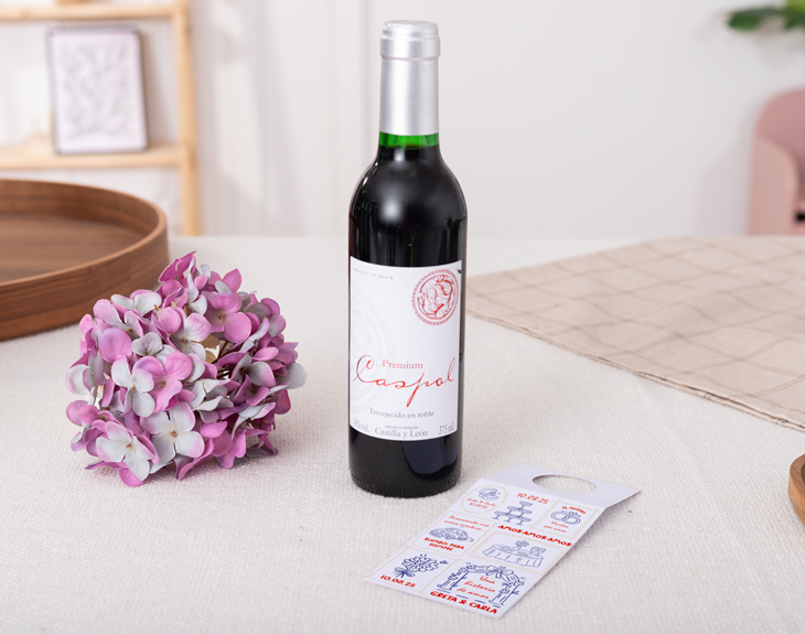 • Benjamín de vino o cava de 350 ml. • Cartón personalizado. • Tarjeta Recordatoria. IMPORTANTE: prohibida la venta de bebidas alcohólicas a menores de 18 años.