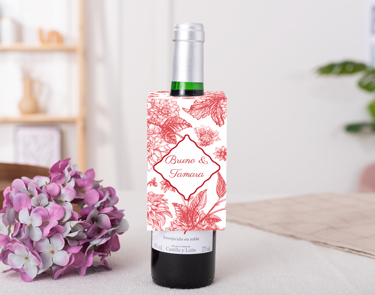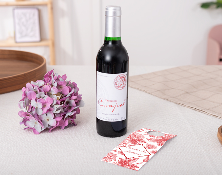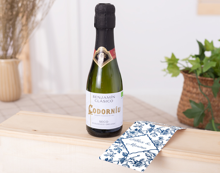¿Has soñado siempre con una boda de ensueño? Imagina ese día con un estilo Toile de Jouy, será una combinación preciosa, porque forman un dúo perfecto. Si buscas una idea romántica, elegante, vintage y con un toque francés, estas mini botellitas de cava o vino con tarjeta personalizada son ideales para sorprender a tus invitados. Su diseño floral puede inspirar tanto la estética como el lenguaje de toda la boda, desde la decoración hasta los pequeños detalles. ¡Todo quedará espectacular! Sin duda, estas botellitas de cava o vino personalizadas se convertirán en uno de los detalles más especiales de vuestro gran día. Tendrás la boda que siempre soñaste y, además, todos podrán brindar y celebrar con vosotros ese amor que florece. ¡Y lo mejor de todo! Podrán llevarse a casa un recuerdo inolvidable, lleno de ternura y cariño. Un regalo original ideal para bodas, aniversarios o cumpleaños, que enamorará a todos por igual. Personalizarlas es muy fácil: elige la botella que más te guste (cava o vino), añádela al carrito, selecciona el diseño que prefieras y escribe el texto que quieras incluir. ¡Y listo! Tendrás unos recuerdos tan bonitos como únicos. Gramaje del papel: 300 gr.