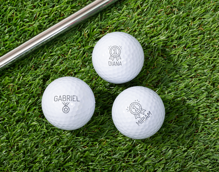 Si has decidido empezar a jugar al golf y ya tienes los palos, solo te faltan tus propias bolas personalizadas para hacer que cada partida sea única. Con estas pelotas serás el centro de atención de los demás jugadores y también de tus amigos, porque nadie tendrá unas iguales. ¡Son lo más! Hazte con tus propias bolas de golf personalizadas o sorprende a esa persona que practica este deporte cada día con este original regalo. Podrás comprar todas las unidades que quieras y tener tus propias pelotas para que cada 'swing' o 'bogie' sean únicos y diferentes. Para personalizar estas bolas, lo único que tienes que hacer es acceder a nuestro diseñador y completar el diseño que más te guste con el nombre que tú quieras. Así de fácil es tener tus propias pelotas personalizadas para practicar este deporte tan guay. Peso: 40 gramos.