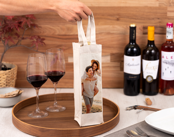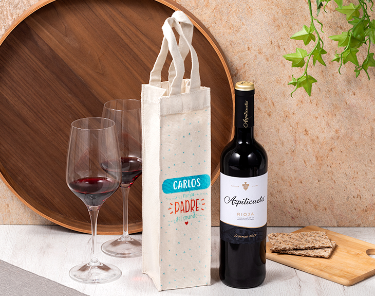 Nosotros somos de los que pensamos que no hay nada más bonito para una cita que una cena romántica en casa. Preparar la cena favorita de tu pareja, incluir unas velas para crear un ambiente amoroso e íntimo... ¡Y disfrutar de una buena copa de vino o cava! Si ambos sois fanáticos de los vinos y os encanta llevar uno en cada ocasión especial, esta bolsa de tela personalizada será el detalle que estabas buscando. Si tu amorcito no puede dejar de probar diferentes tipos de vino o cava, esta bolsa para botella con diseño romántico es el producto perfecto para esta ocasión especial. Esta bolsa está hecha de tela, y cuenta con una altura perfecta para cubrir entera la botella: 41 centímetros incluyendo las asas. ¡Es perfecta para guardar vuestra botella favorita! ¿Y qué mejor manera de hacerlo que con un regalo original que le deje con la boca abierta? Declárate a esa personita que tanto quieres con este diseño, hecho especialmente para los más románticos. Una vez entres en el portal de personalización solo tendrás que escoger el color que quieras para tu diseño. Después encontrarás la plantilla... ¡Solo tendrás que escribir el nombre del amor de tu vida! Y además, podrás escoger si quieres la bolsa únicamente, o si prefieres crear el pack completo, añadiendo la botella de vino o cava. Medidas: 41 x 9 centímetros.
