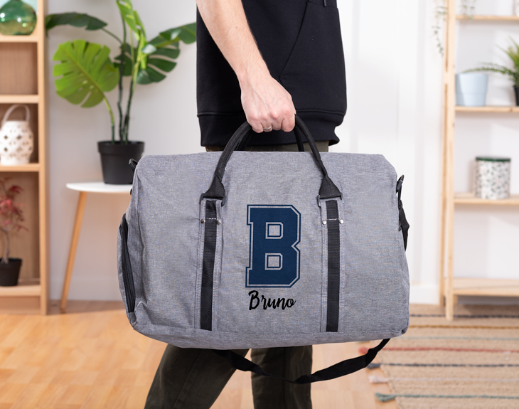¿Cuándo es el siguiente viaje que tienes planeado? Si estás deseando recorrer el mundo entero, tenemos algo que no te puede faltar en ninguno de tus viajes. Se trata de nuestra bolsa de viaje personalizada "Alfabeto College". Sin duda, se convertirá en tu compañera de aventuras. Por otro lado, si conoces a esa persona que comparte tu misma pasión por los viajes, esta bolsa se puede convertir en el regalo perfecto. Esta bolsa de color gris es perfecta para guardar todo tu equipaje, la ropa, el calzado, alguna chaqueta de abrigo, el neceser con las cosas de aseo... ¡Tiene el tamaño perfecto para llevar todo lo necesario! Y lo mejor de todo es que es personalizable, le podrás poner el nombre que tú quieras. ¡Así todos sabrás de quien es esta bolsa tan chula! Personalizar esta bolsa de viaje es muy sencillo. El primer paso a seguir consiste en añadir el producto al carrito y entrar al área de personalización. Una vez ahí, ya puedes elegir la inicial de nuestro alfabeto college y escribir el nombre que quieras. Pronto estará perfecta y lista para regalar. ¡Será un original regalo para viajeros! Altura: 26 cm. Ancho: 28 cm. Largo: 46 cm. Material: poliéster 600D. Importante: esta bolsa no incluye una batería portátil.