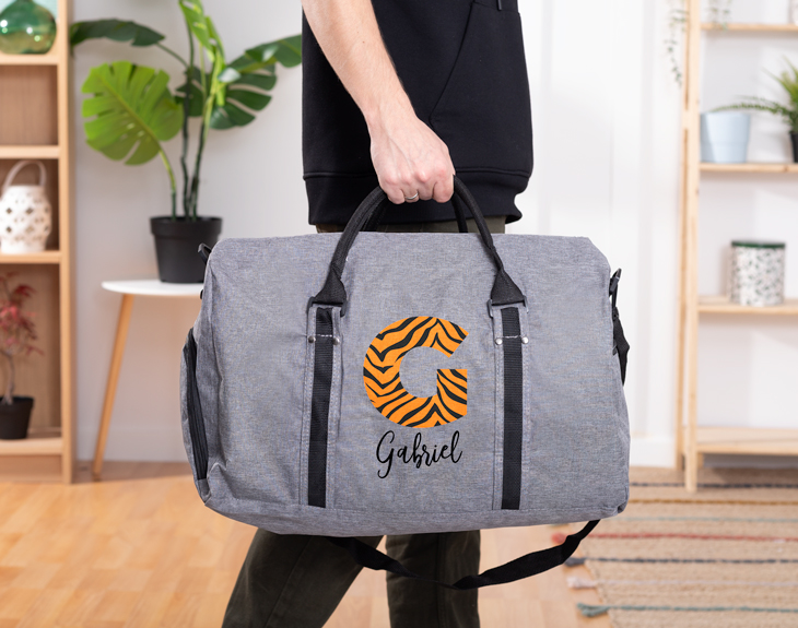 Viajar es una de las mejores experiencias que hay. Descubrir distintas culturas, nuevos lugares, conocer gente nueva... ¡Es increíble! Si tú eres una de esas personas que adora recorrer el mundo, tenemos algo para ti. Nuestra bolsa de viaje personalizada "Animal Print" se convertirá en tu mejor aliada de viajes. Por otro lado, si quieres sorprender a esa persona que siempre se apunta a todos tus vaijes, esta bolsa gris será la mejor opción. Lo mejor de esta bolsa es su estampado tan salvaje, tiene una inicial de nuestro Alfabeto Animal Print. ¡Conquistará los corazones más salvajes! Además, es personalizable. ¡Podrás escribir el nombre que tú quieras! Personalizar esta bolsa de viaje es muy sencillo. El primer paso a seguir consiste en añadir el producto al carrito y entrar al área de personalización. Una vez ahí, ya puedes elegir la inicial con nuestro estampado Animal Print y escribir el nombre que quieras. Pronto estará perfecta y lista para regalar. ¡Será un original regalo para viajeros! Altura: 26 cm. Ancho: 28 cm. Largo: 46 cm. Material: poliéster 600D. Importante: esta bolsa no incluye una batería portátil.