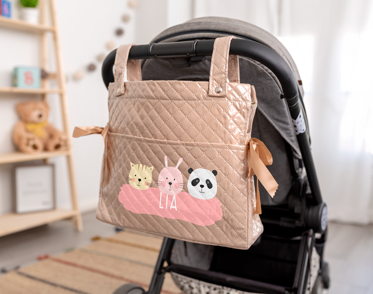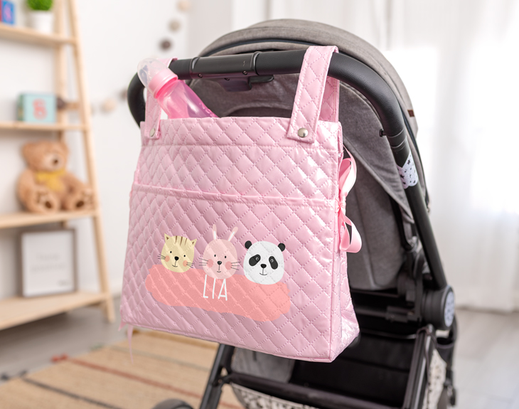 ¿Pronto llegará a tu hogar un bebé y estás buscando todo lo necesario para ese gran día? Entonces no puedes dejar pasar este bolso de paseo personalizado, perfecto para llevar todo lo que tu bebé necesita en sus salidas diarias. Está pensado para ofrecer comodidad y también porque desde que nacemos, tenemos que ir a la moda. Este bolso para el bebé está fabricado en polipiel acolchada, un material resistente al agua, fácil de limpiar y con un toque muy elegante. Su gran capacidad se debe a los múltiples compartimentos y bolsillos, tanto interiores como exteriores, perfectos para tener siempre a mano chupetes, toallitas húmedas o biberones. Además, cuenta con un asa larga para llevarlo cómodamente al hombro o colgarlo, y asas con broches de presión para sujetarlo fácilmente al manillar del carrito. Máxima funcionalidad en cada paseo. Es el regalo original para nacimientos, ideal para ese bebé que acaba de llegar a la familia o para regalar a esa pareja amiga. Lo van a adorar y, además, es de gran utilidad para los papás, especialmente para mamá. Y lo mejor de todo es que hay varios colores para elegir y personalizarlo con el nombre del pequeñín. Pero eso no es todo: también puedes escoger entre varios diseños de animalitos felices para darle vida a esta nueva etapa tan especial. Personalizarlo es muy fácil: solo tienes que añadir el bolso al carrito, elegir el color que más te guste, seleccionar el diseño del animalito preferido y escribir el nombre. Y listo a lucir el bolso talega para carro más chulo del barrio. Cuidados recomendados para que dure mucho más: Limpiar con un paño húmedo y un poco de jabón neutro si hace falta. No lo laves a máquina ni lo sumerjas en agua. Evita exponerlo al sol durante mucho tiempo para que no se desgaste el color. Medidas: 31,5 cm x 37 cm. Medida asas: 26 cm. Colores disponibles: rosa, azul, blanco, crema y marrón.