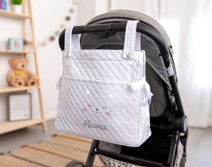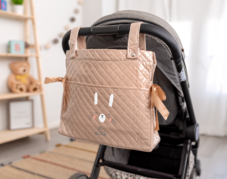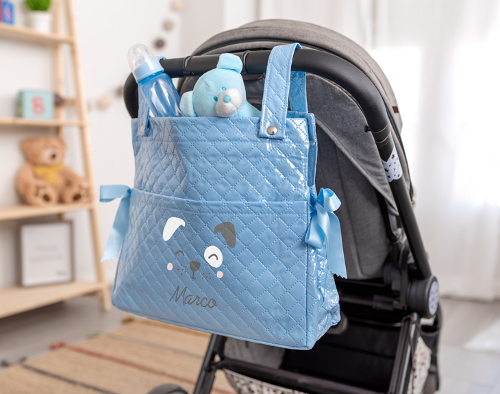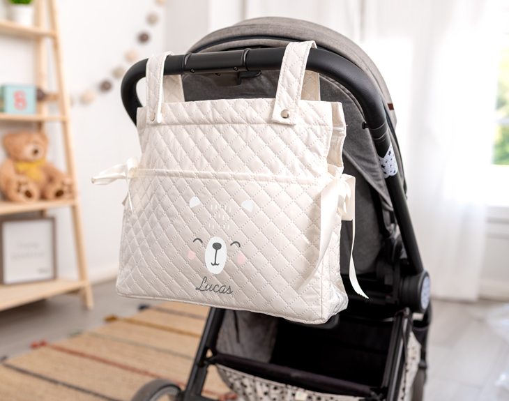 Cuando ves esas dos rayitas, te invade una emoción inmensa. La alegría es tan grande que tu cabeza empieza a llenarse de mil pensamientos y entre ellos, aparece la famosa lista de cosas para el futuro bebé. Y si lo primero que se te ocurre es: “¿Dónde llevaré todas sus cositas cuando salgamos de casa?”, entonces este bolso de paseo plastificado personalizado es justo lo que necesitas. En él podrás llevar cómodamente todo lo que el bebé pueda necesitar cuando estéis fuera. La distribución interior de este bolso talega para carro está diseñada para hacerte la vida más fácil. Cuenta con varios compartimentos interiores y bolsillos exteriores para organizar pañales, toallitas, ropita, biberones y todo lo que quieras tener siempre a mano. Está fabricado en polipiel acolchada, un material elegante, resistente a los derrames y muy fácil de limpiar. Además, es comodísimo de llevar en el carrito del bebé: sus asas con broches permiten colgarlo fácilmente y se adapta a cualquier modelo. Y como no podía ser de otra manera, es una idea genial como regalo de baby shower. Puedes personalizarlo con el nombre del bebé y elegir el diseño de caritas de animalitos que más te guste. ¡Será el detalle más bonito y tierno del día! ¿Lo mejor? Personalizarlo es súper fácil: añade el bolso al carrito, elige el color, selecciona tu diseño favorito y escribe el nombre del peque. Y listo en solo unos clics tendrás el regalo original para bebés más adorable y especial de todos. Cuidados recomendados para mayor durabilidad: Limpiar con un paño húmedo y un poco de jabón neutro si hace falta. No lo laves a máquina ni lo sumerjas en agua. Evita exponerlo al sol durante mucho tiempo para que no se desgaste el color. Medidas: 31,5 cm x 37 cm. Medida asas: 26 cm. Colores disponibles: rosa, azul, blanco, crema y marrón.