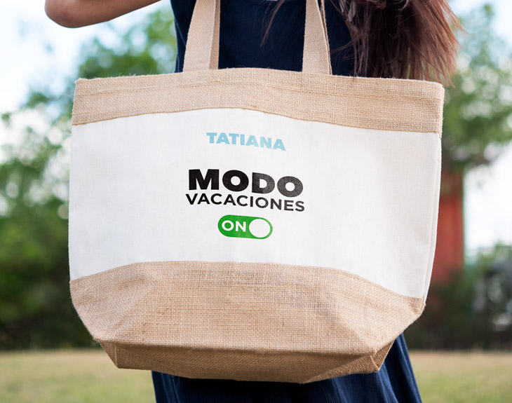 La playa es el mejor lugar del mundo, donde podemos pasar horas y horas y no cansarnos nunca. Podemos bañarnos en el mar, tumbarnos a tomar el sol en la arena, jugar a las cartas, leer un libro mientras escuchamos las olas... ¡Es un planazo! Pero para pasar los días en la playa, sabemos que hay que llevar muchas cosas y por eso necesitas este bolso personalizado. Estamos seguros de que se convertirá en tu accesorio favorito para este verano y que no pararás de utilizarlo todos los días. ¡Es genial! El verano es el mejor momento para hacer todos esos planes que no hemos podido hacer durante el resto del año y uno de ellos es disfrutar de la playa. Y es que no hay mejor complemento para esos días que nuestro original bolso veraniego. Ideal para ser tu mejor aliado cada vez que vayas a la playa o la piscina y poder llevar todas las cositas que necesites para que tu día sea perfecto. Si quieres saber cómo personalizar este bolso sigue leyendo porque es muy fácil. - Si eliges personalizar solo el exterior: completa este divertido diseño con el nombre que quieras y listo. - Si eliges personalizar el exterior y el interior: en el caso del exterior, solo tendrás que completar el diseño. En el interior, podrás elegir qué opción te gusta más y completarla también con el nombre o texto que quieras. Medidas sin asas: 55 x 39 x 15 cm. Medias de las asas: 90 cm. Material: lona. Gramaje: 220 g/m².