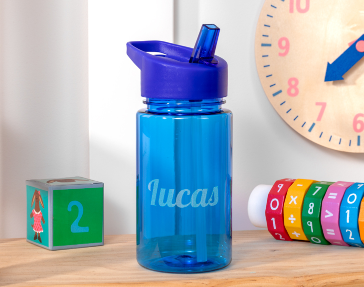 Cada mañana salimos de casa y hasta la noche no volvemos. Vamos al trabajo, comemos fuera, vamos al gimnasio, a recoger a los niños al colegio o a hacer recados. Esto hace que tengamos que llevarnos todo lo necesario para pasar el día fuera de casa y que no nos falte nada. Algo imprescindible es hidratarse, cosa que muchas veces se nos olvida. Por eso, con esta botella con pajita personalizada seguro que no se te olvida beber. es el accesorio que no puede faltar en tu día a día. ¡Es la mejor botella del mundo! Siempre debemos llevar una botella encima para beber agua cuando lo necesitemos. Y es que esta original botella es perfecta para acompañarte cada día fuera de casa. Tiene el tamaño perfecto para poder llevarla donde tú quieras: en el bolso, en la mochila, en el coche y hasta en el gimnasio. Además, cuenta con una pajita en su tapa que hará que beber sea mucho más cómodo y práctico en cualquier situación. Y para que esta cantimplora sea convierta en tu accesorio favorito, tendrás que personalizar tu propia botella. ¡Es muy sencillo! Añade el producto al carrito, entra en el apartado de personalizar y escribe el nombre que quieres que aparezca en la botella. Es el regalo perfecto para una ocasión especial y que sorprenderá a cualquiera. ¡Una botella súper útil! Altura de la botella: 16 cm. Capacidad: 400 ml. Color: Azul. Material: Plástico.