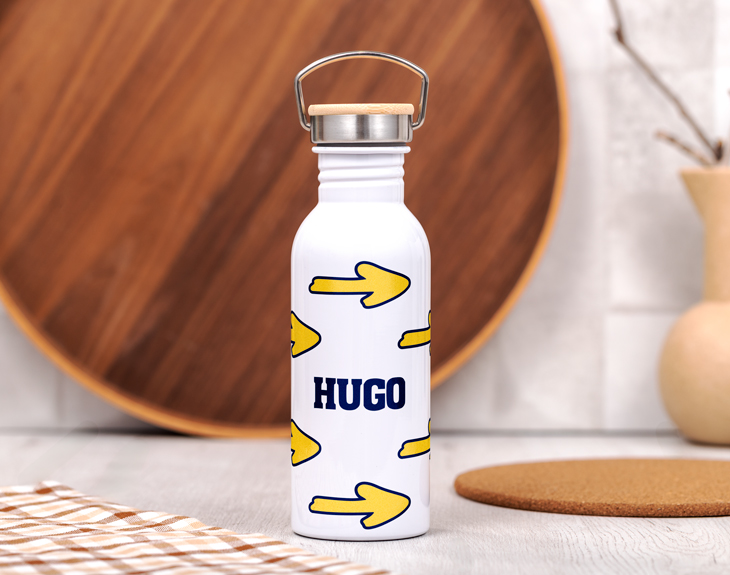 ¡Tenemos el compañero perfecto para tu aventura en el Camino de Santiago! Nuestra botella personalizada está pensada para seguirte paso a paso, igual que las emblemáticas flechas amarillas que guían el camino. Si tú o alguien cercano está a punto de comenzar esta experiencia única, esta botella es un regalo original y lleno de significado. Fabricada en acero inoxidable, con una capacidad de casi un litro y un diseño personalizable, será mucho más que un accesorio: será un recuerdo que inspire en cada etapa del viaje. Podrás personalizarla con el nombre del destinatario, una fecha especial o unas palabras de ánimo que acompañen en cada paso. Verás una vista previa del diseño antes de finalizar el pedido, para que quede exactamente como lo imaginas. Su tapón de rosca con argolla facilita el transporte, y el acabado en bambú natural aporta ese toque ecológico y especial que tanto nos gusta. Convierte esta botella en una compañera fiel en el Camino, como las flechas amarillas que señalan la dirección correcta. ¡Un detalle útil, bonito para cualquier peregrino! Altura de la botella: 22,5 cm. Diámetro de la base de la botella: 7,3 cm. Capacidad: 620 ml. Material: Acero inoxidable.