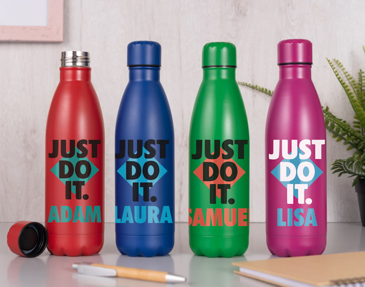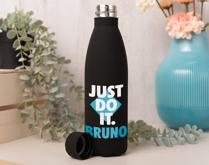 Seguro que conoces a esa persona que por miedo o por inseguridad no se anima a hacer eso que más le gusta. La mejor forma de animarle es con esta botella personalizada Nature de colores. Estamos seguros de que será el regalo perfecto para cualquier persona y que su diseño le animará todos los días para hacer lo que quiera. 'Do It', un mensaje breve y conciso que te dice que hagas algo y que te animes a conseguir eso que más quieres. ¡Será tu botella favorita! Es muy importante beber agua en todo momento, porque nos ayuda a tener la energía suficiente cada día. Con esta original botella se acabaron las excusas porque será muy fácil mantenerse hidratado siempre. Hecha de acero inoxidable, es capaz de mantener las bebidas frías o calientes para que puedas disfrutarlas siempre. Además, cuenta con un tapón para poder transportarla sin que se derrame el líquido. Y lo mejor es que podrás elegir el color que más te guste: rosa, azul, verde, rojo o negro. ¡Hay para todos los gustos! Toca personalizar esta botella. Solo tienes que añadir el producto al carrito y entrar en el área de personalización. Ahí podrás elegir el diseño que más te guste, ya que el color de las letras y el del nombre varía. Después, solo tienes que escribir el nombre que quieras, colocarlo y listo. ¡Tendrás la mejor botella del mundo para motivarte todos los días! Altura de la botella: 25 cm. Capacidad: 790 ml. Material: Acero inoxidable.
