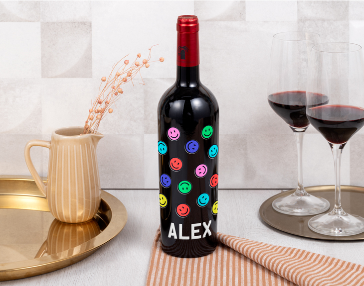 ¿¿Conoces a alguien que pondría una carita feliz con una copa de vino y buena compañía? ¡Entonces esta botella de vino personalizada está hecha a su medida! Y es que tiene un diseño de lo más divertido, pensado especialmente para los verdaderos amantes del vino y los emoticones. Un regalo original ideal para cumpleaños, aniversarios, San Valentín, celebraciones especiales o simplemente para tener un detalle único con quien más quieres. Seguro que le parece una idea increíble. Además, puedes aprovechar para prepararle una cena romántica y acompañarla con esta botella de vino con nombre. ¿Te imaginas la cara que pondrá cuando la vea? Se morirá de ilusión. Es una opción genial como regalo para amantes del vino, con etiqueta personalizada y lista para brindar con estilo. Perfecta para sorprender a esa persona especial con un detalle lleno de personalidad. Personalizarla es muy fácil: añade el producto al carrito, elige el diseño que más te guste, escribe el nombre o texto que quieras, ¡y listo! Nosotros lo incluiremos en el diseño para que se convierta en el detalle más especial del mundo. Ideal como detalle romántico personalizado. La base de este regalo es un exquisito vino de la Tierra de Castilla y León, cuya certificación de origen garantiza una calidad excepcional. Envejecido en barrica de roble, es un caldo sorprendente y lleno de matices. Su botella premium y su sabor cuidadosamente elaborado hacen de él el mejor regalo posible.