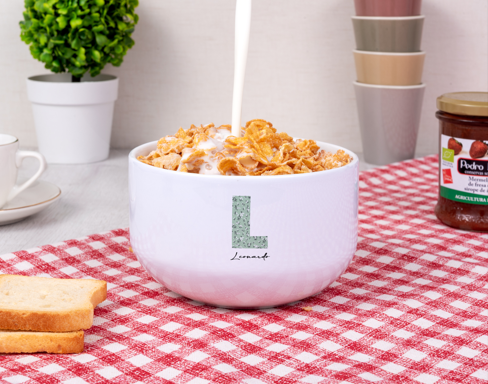 ¿Cuál es tu desayuno favorito? ¡Estamos todos de acuerdo en que desayunar un buen cuenco de cereales es lo mejor del mundo para empezar bien el día! Por eso, nuestro bol personalizado con diseño "Familia Florecitas" es algo que no puede faltar en tu cocina. ¡Es genial! Por otro lado, si conoces a esa persona que adora todo tipo de cereales, este bol de cerámica está pensado expresamente para ella. Además, lo mejor es que es personalizable. ¡Podrás escribir el nombre que tú quieras! Se puede convertir en un regalo muy original y personal. Personalizar este bowl de cerámica es súper sencillo. El primer paso a seguir consiste en añadir el producto al carrito y entrar al área de personalización. Una vez ahí, ya puedes escribir el nombre que tú quieras y escoger la inicial de nuestro alfabeto. Pronto estará perfecto y listo para regalar. ¡Será un original regalo! Medidas: 8 cm de alto x 13,5 cm de diámetro. Capacidad: 570 ml. Importante: Lavar a mano.
