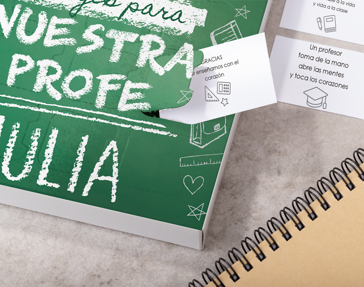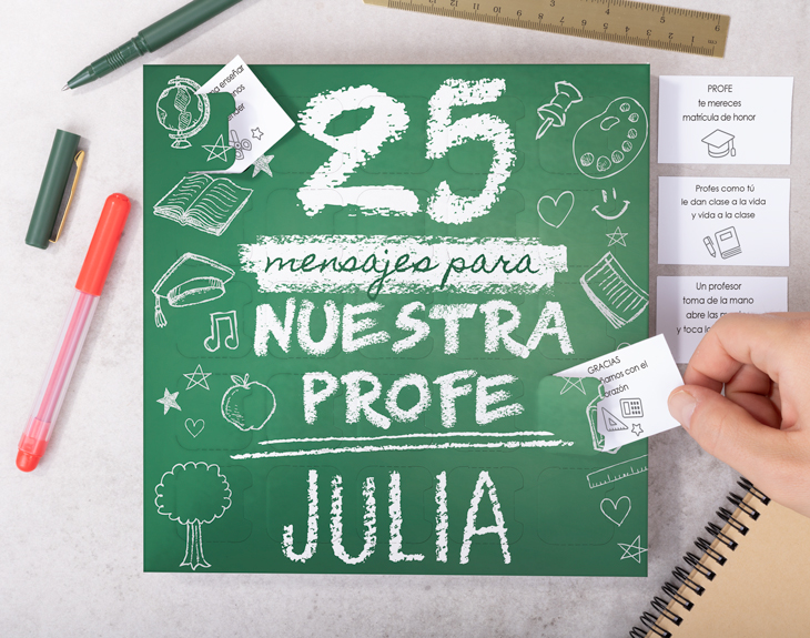 • Caja 25 mensajes para profes. • Tarjeta recordatoria.