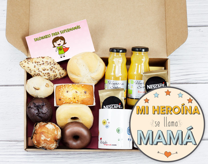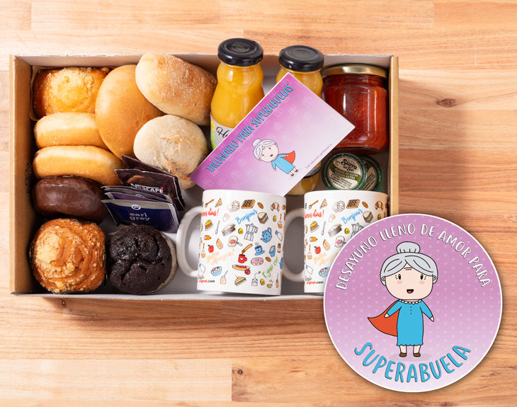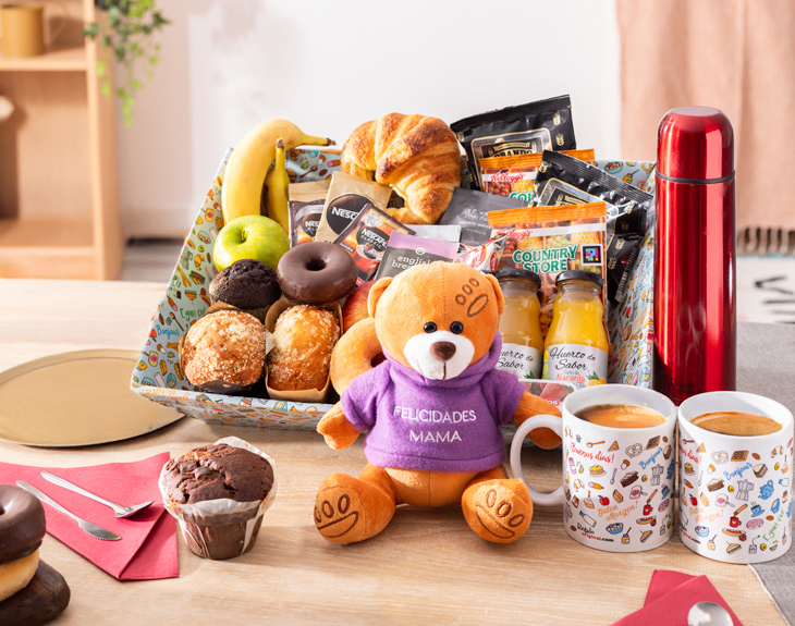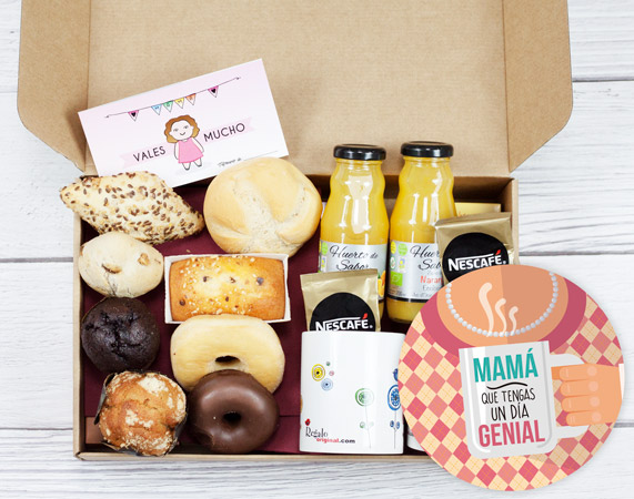 ¿Cuántos instantes inolvidables has compartido con la mujer más importante de tu vida? Desde el mismo nacimiento, la relación entre una madre y un hijo es casi inquebrantable, un vínculo que no se puede comparar con ninguno otro. ¿Recuerdas esa fiesta de cumpleaños que te preparó? ¿O tal vez esos sábados en los que te llevaba a tu restaurante favorito? Todos esos increíbles momentos viven en vuestra memoria para siempre, ¿pero no estaría genial regalarle a mamá un poco de nostalgia y mucha, mucha comida? Si quieres hacerle un regalo especial a tu madre, esta caja de desayuno con foto es el producto perfecto para ella. Porque seamos claros: ¿acaso hay mejor manera de comenzar el Día de la Madre que con un buen desayuno? Esta caja cuenta con un desayuno fantástico, para que mamá tenga toda la energía posible a lo largo de la jornada. Además, cuenta con una gran variedad de productos. Tés, cafés, zumos, muchísima bollería artesanal... ¡y podrás elegir que sea para dos personas! Disfrutad de una comilona tremenda y celebra que tienes la mejor madre del mundo gracias a esteregalo original ¿Cómo se graba el mensaje? ¡Es muy fácil! Añade el desayuno al carrito y dale al botón de "personalizar". Podrás grabar un mensaje en ese momento (con el micro del móvil o del ordenador) y nosotros nos encargaremos de incluirlo en el desayuno. El mensaje tiene un límite de 30 segundos. ¡Ahí podrás decirle lo que quieras!