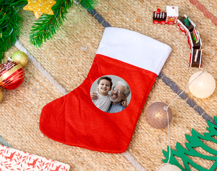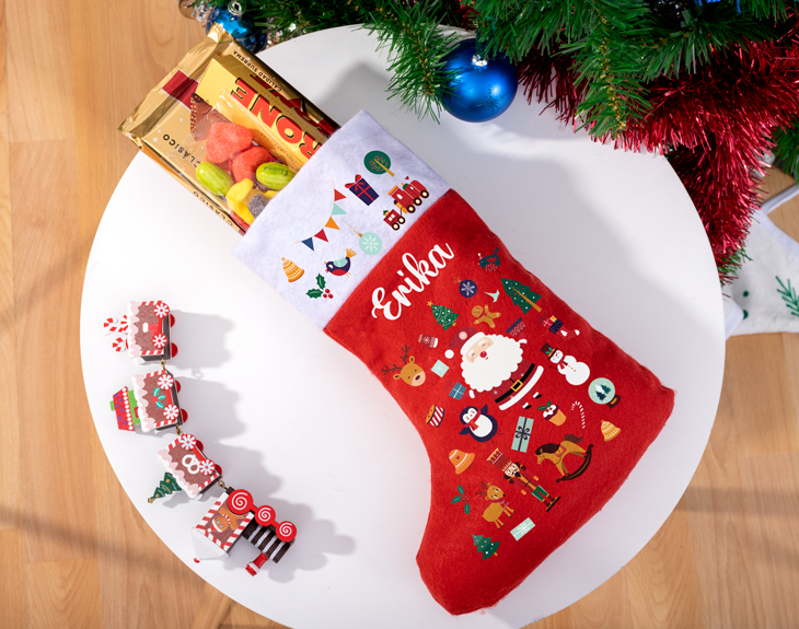 • Calcetín de Papá Noel personalizado. • Tarjeta Recordatoria.