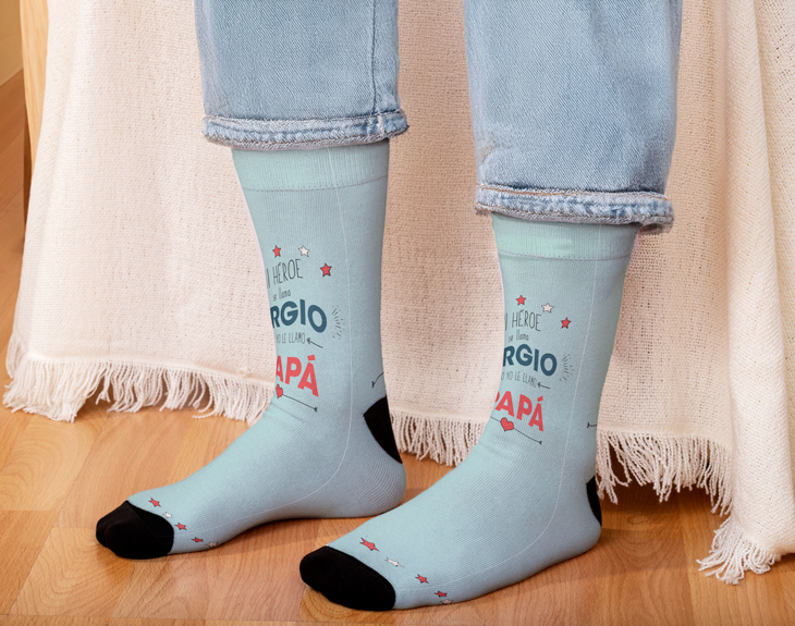 Tu padre siempre te ayuda en todo lo que necesitas y nunca deja de apoyarte, sabes que no han sido pocas las veces que de adolescente le pusiste a prueba y que su paciencia es infinita... Alguna vez, casi seguro, te hayas preguntado cómo puede con todo él solo. Te parece sorprendente que nunca se venga abajo y que afronte todo con tanta energía, lo mires como lo mires, ¡es un héroe! Y un padrazo. Estabas pensando en hacerle un regalo original, algo práctico y cómodo que pueda ponerse siempre y habías llegado a la conclusión de que le vendrían genial unos calcetines. ¡Qué buena idea! Aprovecha que tenemos este diseño personalizado para decirle cuánto valoras lo fuerte que es con todo. ¡Siempre hace ilusión que tus hijos te recuerden cuanto te quieren! No te olvides de escribir su nombre en la personalización. Nosotros haremos el resto para que puedas recibir lo antes posible un par de calcetines comodísimos que serán los favoritos de tu padre. ¡Y si quieres ser el hijo del año, no dudes en combinar este regalo con otros diseños para padres fantásticos! Importante: en los calcetines bajos, la impresión se realiza en la planta del pie o el empeine IMPORTANTE: Talla: única Medidas de cada calcetín: 41x9 cm. Medidas de la caja: 13,5x10,5x4 cm. Medidas de la lata: 11x8,5 cm. Material: poliéster