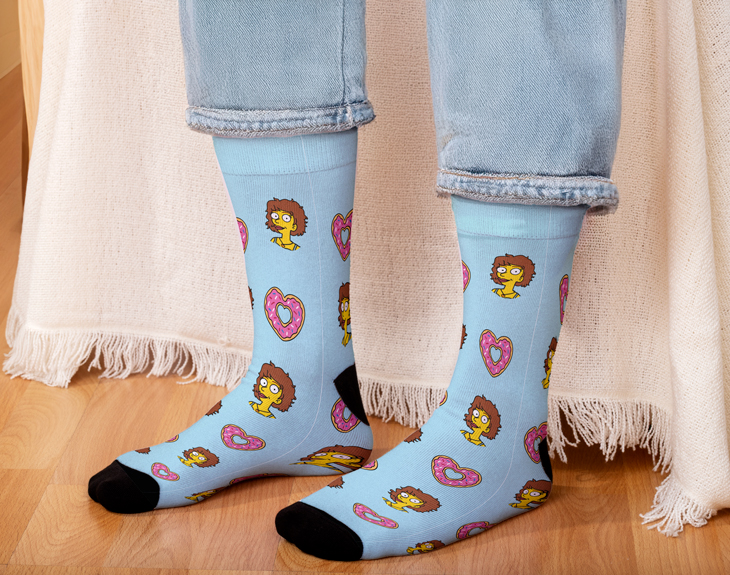 ¿Alguna vez imaginaste ser un personaje de la ciudad de Springfield? Si eres un auténtico fan de la serie, estos calcetines personalizados con diseño "Simpson corazones" están hechos para ti. Podrás crear tu propio personaje desde cero y elegir el color de fondo del calcetín. Quedarán geniales y súper divertidos. Lo mejor de estos calcetines es que son personalizables. ¡Podrás crear tu propio avatar Simpson a tu gusto! Desde el pelo hasta la ropa y los accesorios, podrás diseñarlo como más te guste. Quedará increíble, ¡y será el regalo más original para cualquier ocasión! Ya sea para el Día de los Enamorados, vuestro aniversario o incluso el cumpleaños de un fanático de la serie, estos calcetines siempre serán un acierto. Personalizar estos calcetines es muy sencillo y divertido. Solo tienes que añadir el producto al carrito, entrar en el área de personalización y empezar a crear tu propio personaje Simpson. ¡El resultado será igualito a ti! Importante: En los calcetines bajos, la impresión se realiza en la planta del pie o el empeine. Detalles del producto: Talla: única Medidas de cada calcetín: 41 x 9 cm Medidas de la caja: 13,5 x 10,5 x 4 cm Medidas de la lata: 11 x 8,5 cm Material: poliéster