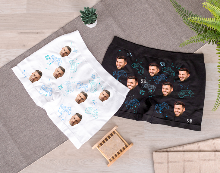 Si tu novio es un auténtico 'gamer' y le encanta pasarse horas jugando a sus videojuegos favoritos, hazle el regalo más divertido y sexy del mundo: ¡nuestro calzoncillo personalizado con este estampado tan guay! Sorpréndele con este regalo tan diferente y hecho a medida para él, que le encantará y querrá usar en todas vuestras veladas románticas. ¡Es el regalo perfecto! No hay mejor forma de sorprender a tu novio en vuestro aniversario, San Valentín o su cumple que con este original detalle para parejas. Es un regalo de lo más romántico y divertido para sacarle una sonrisa a tu novio y le encantará poder usarlos siempre que quiera porque son súper cómodos. Se convertirá en su prenda favorita porque es súper guay. Están fabricados con poliamida, un tejido elástico y transpirable, y cuentan con una cinta elástica para que se ajusten perfectamente a la cintura. Además, puedes escoger entre diferentes tallas (M, L y XL), así todo el mundo podrá disfrutar de estos increíbles calzoncillos personalizados con la cara que quieras. Si quieres saber cómo puedes personalizar este calzoncillo, sigue leyendo porque es muy fácil. Añade el producto al carrito y entra en el área de personalización. Ahí encontrarás este divertido diseño hecho para los novios más gamers que tendrás que completar con la imagen que quieras. Nosotros nos encargamos del resto para que disfrutéis de este súper regalo. ¡Será un recuerdo único! Talla: - Talla M: 33,5 x 25 centímetros. - Talla L: 36 x 26 centímetros. - Talla XL: 43 x 29 centímetros. Material: poliamida (90%) y elastano (10%). Color: negro. Importante: se puede lavar a una temperatura máxima de 30 grados. No es recomendado usar lejía ni secarlo en la secadora. No se debe planchar.