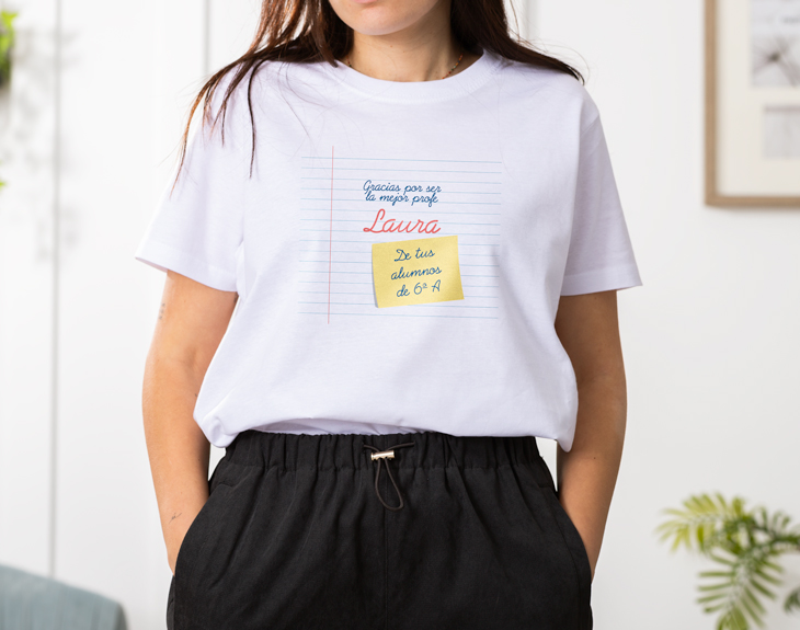 El curso llega a su fin y eso significa que toca despedirse de nuestros amigos, los deberes, los exámenes y también de los profesores. Seguro que os da mucha decirle adiós a vuestro profe favorito que tanto os ha enseñado durante este año. Por eso, para que nunca se olvide de vosotros, esta camiseta personalizada es el regalo perfecto. Cada vez que se la ponga se acordará de todos los momentos bonitos que ha vivido con su clase. ¡Le encantará! El último día de curso, es el momento perfecto para regalarle esta original camiseta a ese profe que lo ha dado todo en cada clase este año. Nunca está de más agradecerle la vocación y dedicación que ha puesto en cada una de las clases de este año, la paciencia que ha tenido con todos sus alumnos y lo mucho que les ha enseñado. Lo mejor es que podrás elegir el tipo de prenda que más te guste para tu profe: camiseta, manga corta, manga larga, sudadera... ¡Hay para todos los gustos! Pero antes de terminar, toca personalizar esta camiseta. Elige el tipo de prenda que quieres y añade el producto al carrito. Después, podrás escribir el nombre de tu profe y el texto que quieras en los demás espacios vacíos. Ajusta todo para que quede perfecto y listo. ¡Un regalo único para el mejor profe del mundo! Material: - Algodón: 100% algodón. - Tacto algodón: 100% poliéster cotton touch. - Técnicas: 100% poliéster. Importante: Las medidas son aproximadas, pueden variar 5cm por encima o por debajo.