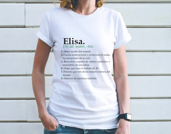 La camiseta más espectacular para sorprender a tu mamá el Día de la Madre. Aparece con la camiseta puesta cuando tu madre esté leyendo en el salón o haciendo sus cosas en casa, y verás que sorpresa tan bonita le darás. También puedes empaquetar la camiseta y regalársela. Solo necesitamos el nombre de tu mamá para personalizar al 100% la camiseta. Material: - Algodón: 100% algodón. - Tacto algodón: 100% poliéster cotton touch. - Técnicas: 100% poliés Importante: Las medidas son aproximadas, pueden variar 5cm por encima o por debajo.