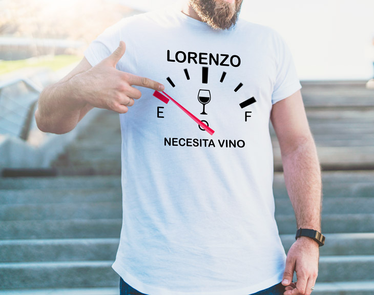El vino es un elemento indispensable en cualquier reunión social. ¿Quién no se ha tomado una buena copa de este líquido tan rico y preciado? Esta bebida lleva formando parte de nuestras vidas desde los inicios de la historia. Muchísimos hombres han sucumbido a ella, obsesionados con seguir probando su delicioso sabor. Y seamos claros: ¿a quién no le gusta el vino? ¿Conoces a alguna persona que necesita tomar este exquisito líquido para vivir? Entonces esta camiseta personalizada es el regalo ideal para todas aquellas personas cuyo depósito de combustible necesita una buena copa de vino. Con una camiseta como esta, triunfarás en todas las reuniones sociales a las que asistas. Da igual si eres más de tinto o blanco: con este producto, todos los vinos son validos. Tienes varios tipos de camisetas entre las que elegir: ¿eres más de camisetas de algodón o de poliéster? Puede que te guste lucir tus buenos brazos con una camiseta sin mangas. ¡Tienes muchísimos productos entre los que elegir! Personaliza tu regalo original con el nombre de ese amante del vino, y sorpréndele con un detalle personalizado. ¡Qué comience la fiesta del vino! Material: - Algodón: 100% algodón. - Tacto algodón: 100% poliéster cotton touch. - Técnicas: 100% poliéster. Importante: Las medidas son aproximadas, pueden variar 5cm por encima o por debajo.