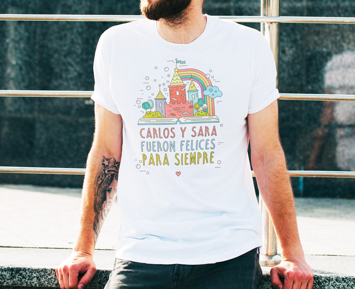 Si crees que con tu pareja vives un amor de cuento, esta camiseta personalizada es perfecta para ti. Solo necesitamos vuestros nombres para diseñar el regalo y le puedas dar una sorpresa enorme a tu pareja. ¿Cuántas veces habías soñado vivir un amor de cuento? Si estás buscando un detalle como este, significa que ya lo has encontrado. ¡Qué bonito es el amor verdadero! Aprovecha San Valentín, su cumpleaños o vuestro aniversario para darle una sorpresa súper tierna a tu pareja. Material: - Algodón: 100% algodón. - Tacto algodón: 100% poliéster cotton touch. - Técnicas: 100% poliéster. Importante: Las medidas son aproximadas, pueden variar 5cm por encima o por debajo.