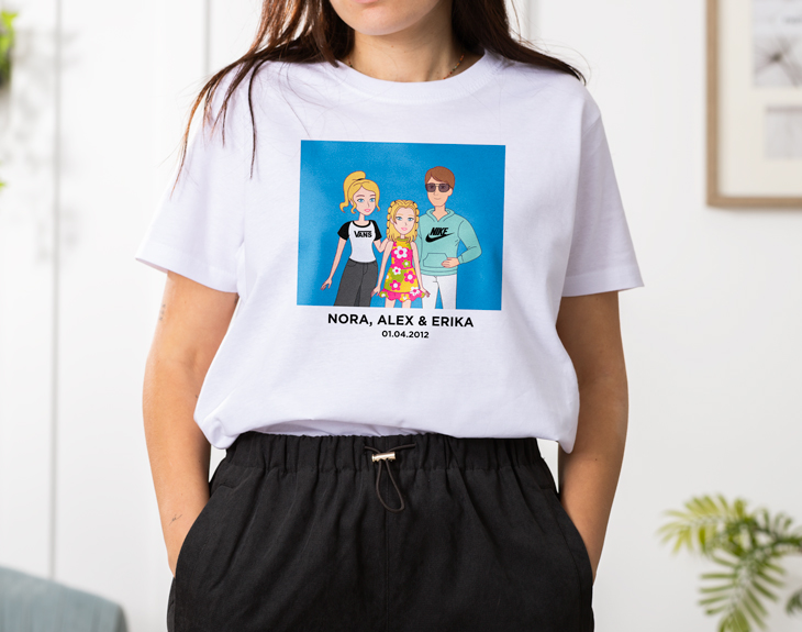 ¡Dollina ha vuelto para quedarse y para llenar nuestro mundo de color rosa! Si tú eres una auténtica fan de esta muñeca tan famosa, tenemos algo que te va a encantar. Nuestra camiseta personalizada con diseño "Familia Dollina Pop" es chulísima. Sin duda, se convertirá en tu prenda de ropa favorita. Con esta camiseta podrás crear a toda tu familia en forma de Dollina y Ken porque es personalizable. ¿A qué es genial? Hay un montón de rasgos y accesorios distintos para que puedas representar a tus familiares a la perfección. Esta camiseta se puede convertir en un regalo muy original para esa persona fan de Dollina. ¡Le encantará! Personalizar esta camiseta es súper sencillo. El primer paso a seguir consiste en añadir el producto al carrito y entrar al área de personalización. Una vez ahí, ya puedes crear a estos avatares desde cero, ¡ya verás qué divertido! Pronto estará perfecta y lista para regalar. ¡Será un original regalo! Material: - Algodón: manga corta- 100% algodón; manga larga- 100% algodón. - Tacto algodón: 100% poliéster cotton touch. Ligeramente translúcida. - Técnica: 100% poliéster (Colores solo disponibles en algodón) Importante: nuestro equipo de personalización se encargará de ajustar la distribución de los personajes en el producto en función de su tamaño para que se vean lo mejor posible. Importante: El color de los nombres variará según el color de la camiseta que elijas: Nombres blancos: - Camisetas azules de invierno y verano - Camisetas rojas de invierno y verano - Camisetas negras de invierno y verano - Camisetas rosas de invierno Nombres negros: - Camisetas blancas de invierno y verano - Camisetas grises de invierno y verano - Camisetas amarillas de verano - Camisetas verdes de verano - Camisetas rosas de verano Importante: Las medidas son aproximadas, pueden variar 5cm por encima o por debajo.