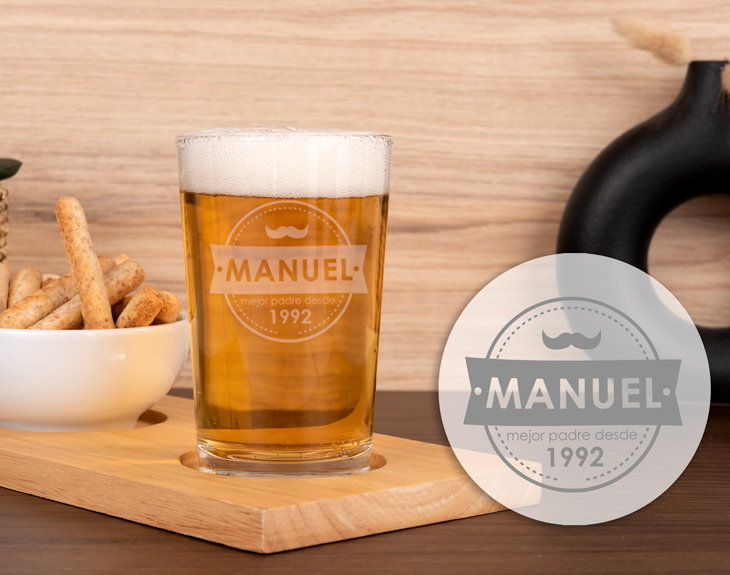 Con esta caña de cerveza, tu padre recordará que es el mejor del mundo con cada sorbo de este líquido celestial. Y es que en este vaso de caña de cerveza personalizado, grabaremos el nombre que tú nos digas junto a la inscripción "mejor padre desde". Por supuesto, podrás elegir el año, para que sea 100% personalizada. Es un regalo muy guay: no cuesta mucho dinero, es original y hará que la experiencia de beber cerveza sea aun más especial. ¿Qué más se puede pedir? IMPORTANTE: En el caso del vaso elegante, el grabado se realiza más bajo, cercano del borde inferior del vaso, para mantener la consistencia del vaso.