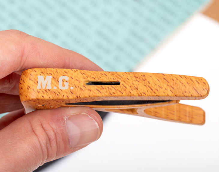 La pasión por la música alcanza una nueva dimensión con nuestra cejilla marrón personalizada, el accesorio que convertirá cualquier guitarra en una auténtica extensión de tu estilo. Ya sea para tus ensayos, conciertos o sesiones improvisadas, esta cejilla será tu mejor aliada. Sorprende a ese guitarrista especial con un detalle que nunca olvidará. Compatible con guitarras acústicas y eléctricas, está diseñada para colocarse fácilmente con una sola mano. Pero lo que realmente la hace especial es que puedes grabar tus iniciales, el nombre de tu banda o una palabra con significado para ti. Un detalle especial que transforma tu instrumento en algo verdaderamente personal. ¿Y por qué no regalar una a cada integrante del grupo? Es un regalo original, práctico y con mucho rollo, que seguro emocionará a cualquier amante de la música. Personalizarla es muy fácil: añade al carrito tantas cejillas como quieras, accede al área de personalización y escribe el texto que desees. En pocos días, recibirás un regalo único, útil y lleno de personalidad. Medidas aproximadas: 9 cm (ancho) x 10,5 cm (alto).