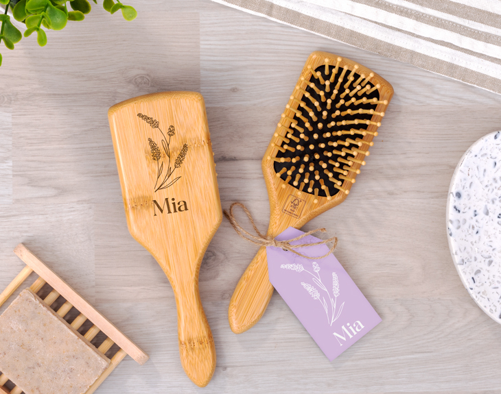 ¿Buscas un detalle especial que combine belleza, utilidad y un toque personal? Este cepillo de bambú personalizado con nombre y etiqueta con diseño "Flores Salvajes" es el regalo perfecto para sorprender en cualquier ocasión. Ideal para cumpleaños, Día de la Madre, amigo invisible o simplemente para decir “te quiero”, este accesorio se convertirá en el favorito de quien lo reciba. Ligero, práctico y con un diseño delicado, es perfecto para llevar en el bolso o tener siempre a mano. Su nombre grabado en el cepillo lo hace único, mientras que la etiqueta personalizada con estampado de flores aporta un toque alegre y femenino. Además, sus cerdas anchas desenredan sin tirones, cuidando el cabello con suavidad. Un detalle bonito, original y funcional, que transmite cariño desde el primer vistazo. Porque cuando el regalo es personalizado, siempre aciertas. Medidas: 20 x 6,5 cm.