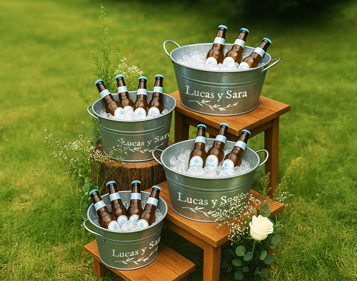 • Seis botellines de cerveza personalizados (250 ml). • Caja de cartón • Tarjeta Recordatoria. IMPORTANTE: prohibida la venta de bebidas alcohólicas a menores de 18 años.