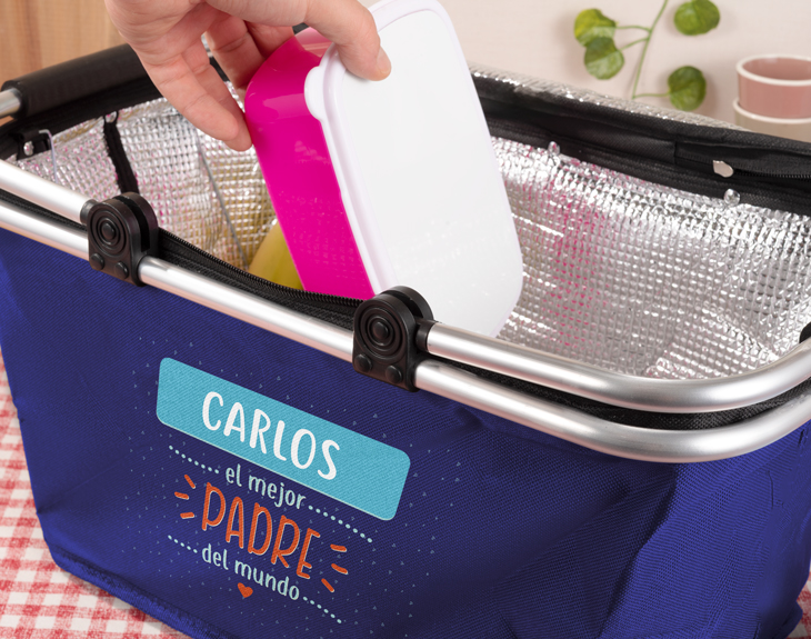 Seguro que a veces te parece complicado saber qué regalo hacerle a tu padre en fechas señaladas como su cumpleaños o el día del padre. Pero tenemos solución a este problema y es que nuestra nevera plegable personalizada es el mejor regalo para todos los padres. Si lo que quieres es huir de típicos regalos como una colonia, este seguro que le sorprende. Su diseño le encantará, porque le puedes decir que es el mejor padre el mundo. Es un regalo diferente y muy práctico que seguro que le encanta. Esta original cesta es el accesorio perfecto para llevarlo donde quieras. Para hacer la compra, para llevar la comida en un picnic, al campo o a la playa... ¡Todo vale! Esta súper cesta tiene gran capacidad para meter todo lo que necesitemos y que nunca nos falte nada. Con unas prácticas asas para que podamos transportarla y lo mejor está en su interior, porque cuenta con aislamiento térmico para mantener comidas y bebidas tanto frías como calientes. ¡Es la mejor cesta del mundo! Y si quieres que este regalo sea único y muy especial para tu padre, podrás personalizar esta nevera plegable con este diseño que encantará a cualquier a todos los padres del mundo. ¡Es muy sencillo! Añade el producto y personaliza el diseño, solo tienes que escribir el nombre que quieras y listo. ¡Esta cesta acompañará a tu padre en todas sus aventuras! Medidas: 47,5 x 27,5 x 21 cm.