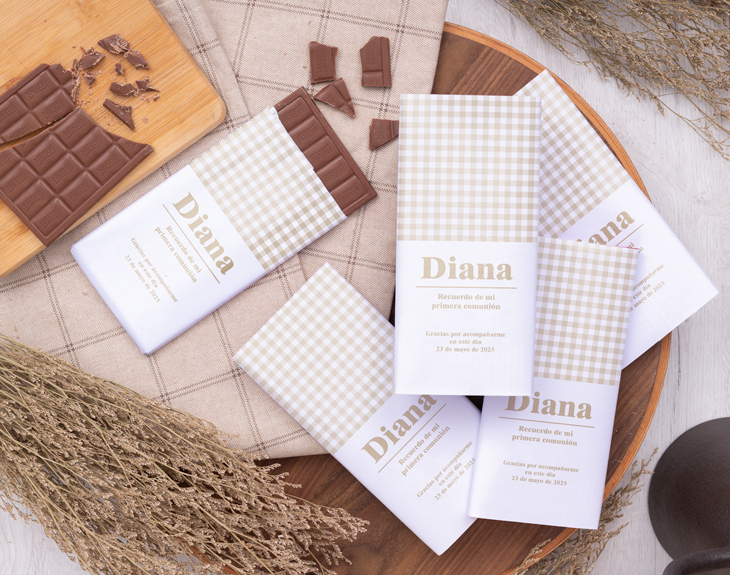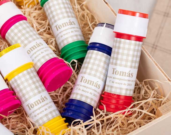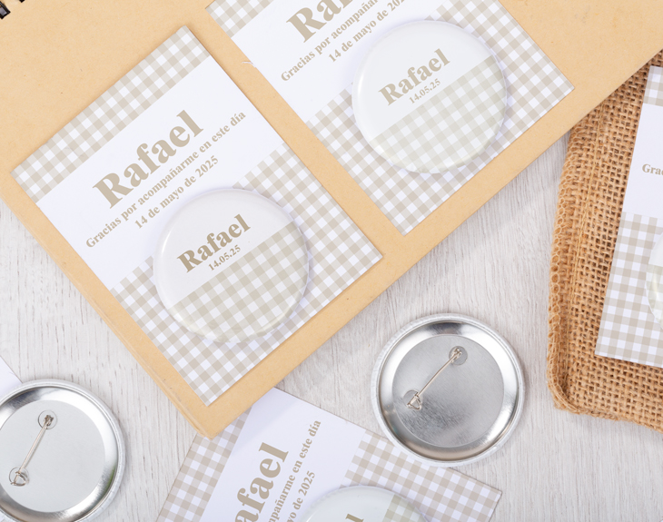 ¿Se acerca el Día de la Primera Comunión de tu hijo/a? Seguro que ya estás con todos los preparativos para que todo salga a la perfección. Y, como no puede faltar en un evento tan importante, es esencial tener un recuerdo para los invitados. Así, podrán rememorar ese gran día que compartieron en familia. Nuestras chapas personalizadas con cartoncito, con un diseño "Cuadritos Vichy", son ideales para esta ocasión. Regalar un detalle a los invitados es una preciosa manera de agradecerles por su presencia en la celebración y por siempre estar ahí para ti. ¡Les encantará! Y lo mejor de todo es que tanto la chapa como el cartoncito son personalizables. Podrás incluir el nombre de tu hijo/a, la fecha, o incluso un breve mensaje de agradecimiento. ¡Así, siempre quedará en el recuerdo! ¿Cómo personalizar este original recuerdo? Es muy sencillo. Solo tienes que añadir la cantidad de chapas que desees al carrito y entrar al área de personalización. Una vez allí, podrás escribir lo que desees tanto en la chapa como en el cartoncito. ¡Será un regalo original para comuniones que tus invitados nunca olvidarán!