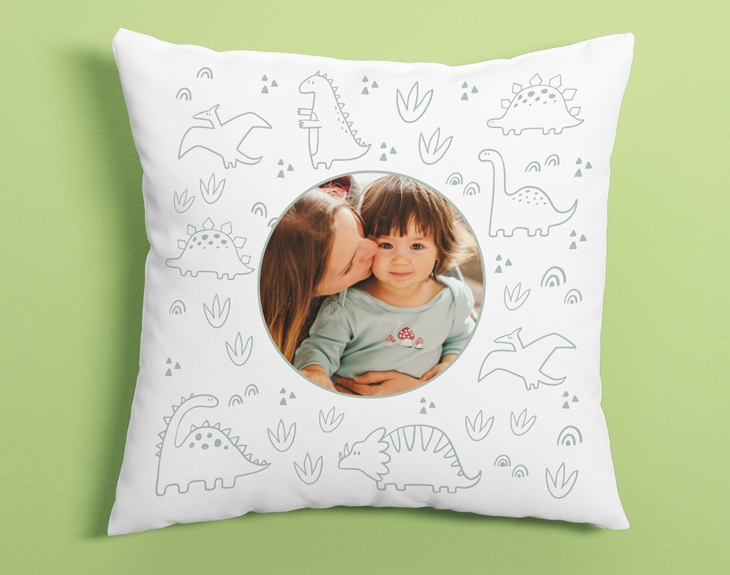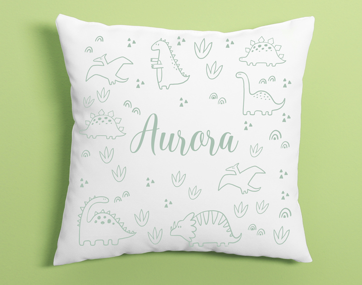 La energía que tienen los niños parece que no se agota nunca, por mucho que hagan durante el día siempre tienen ganas de más. Pero a veces, es necesario descansar tanto mental como físicamente y seguro que les encantaría hacerlo sobre su propio cojín personalizado. Lleno de dinosaurios de color verde pastel, este diseño está pensado especialmente para los más pequeños de la casa. Tener un cojín siempre a mano para poder descansar es fundamental y los niños lo necesitarán después de sus largas e intensas jornadas diarias. Si tus hijos son unos auténticos apasionados de los dinosaurios y se saben todas las especies que existen, este cojín es el regalo perfecto. Este original cojín puede convertirse en el regalo perfecto para sorprender a los niños el día de su cumpleaños o en alguna celebración especial. Es una opción diferente si no sabes que regalarle al peque de la casa, porque seguro que le hace mucha ilusión recibir un cojín con su nombre o una foto suya rodeada de siluetas de sus dinosaurios favoritos. No habrá momento en el no quiera usar este cojín para dormir, jugar a la consola, leer o apoyar su espalda cuando esté sentado haciendo deberes. ¡Sirve para todo! Pero antes de que termines de leer, recuerda que tienes que personalizar este cojín para que sea el más especial del mundo. Podrás elegir cómo quieres personalizarlo porque tienes dos opciones: añadir solo un nombre o solo una foto. ¡Tú decides qué opción te gusta más! A los pequeños de la casa les encantará tener su propio cojín de dinosaurios sobre el que descansar siempre que lo necesiten. ¡Será su cojín favorito! Pero si quieres, puedes elegir el pack que incluye cojín y taza personalizados. Podrás llevarte ambos productos y personalizarlos como tú quieras, con el mismo nombre y que sea un regalo para el mismo niño o niña o con nombres diferentes y así poder hacer dos regalos. ¡Tú decides! Medidas: 40 x 40 cm.