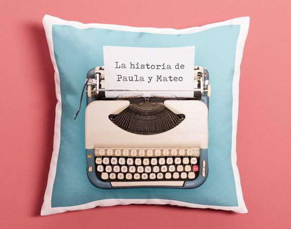 Si buscas un regalo para un escritor, el cojín personalizado con una máquina de escribir es lo que buscabas. Ponemos en un papel, saliendo de una añeja máquina, el mensaje que tú nos digas. Luego lo convertimos en un blandito cojín y lo mandamos al lugar que tú nos digas. Al adquirir el producto (y antes de pagar) se te preguntará el texto para el cojín.