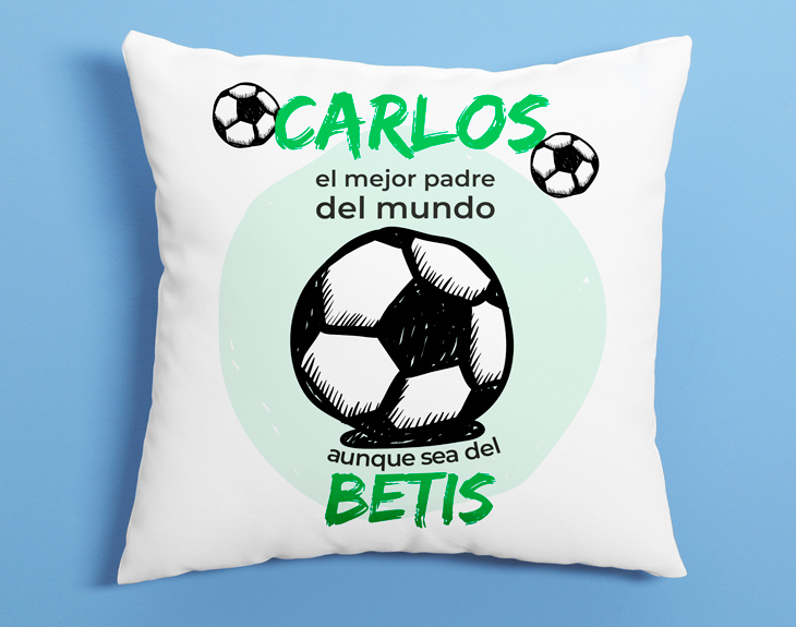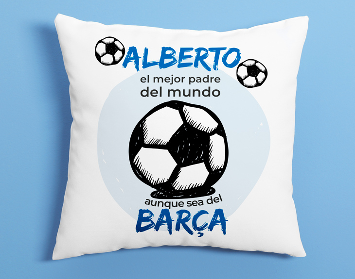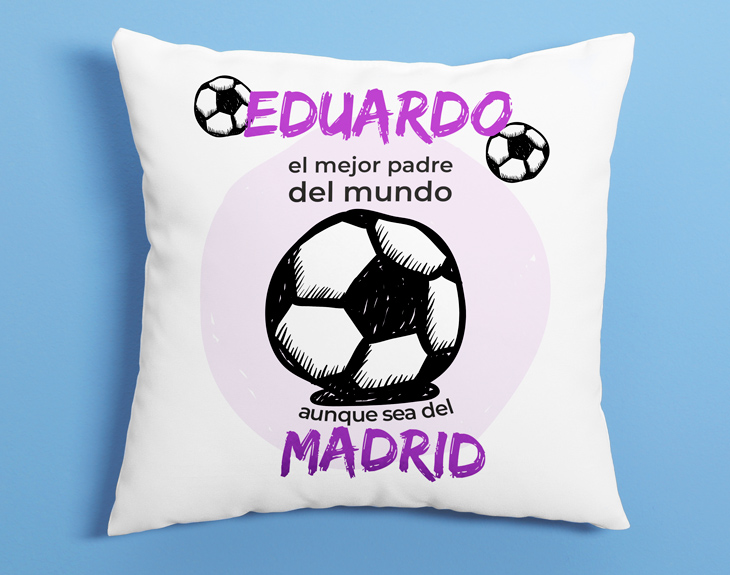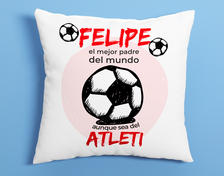 Si has heredado de tu padre la afición por el fútbol, pero cada unjo sois de equipos diferentes, este cojín personalizado tan divertido tiene que ser suyo. Se trata del detalle perfecto para darle una increíble sorpresa en el día del padre, en su cumpleaños o justo antes de que empiece ese partido que tanto enfrentamiento causa en casa...¡Así será aún más emocionante! Y es que aunque sea del equipo contrario, sigue siendo el mejor padre del mundo y le sigues queriendo más que a nadie...¡Así que demuéstraselo de esta forma tan original! Solo tienes que escoger el color que mejor represente a su club, decirnos su nombre y el de su equipo...¡Le gustará muchísimo!