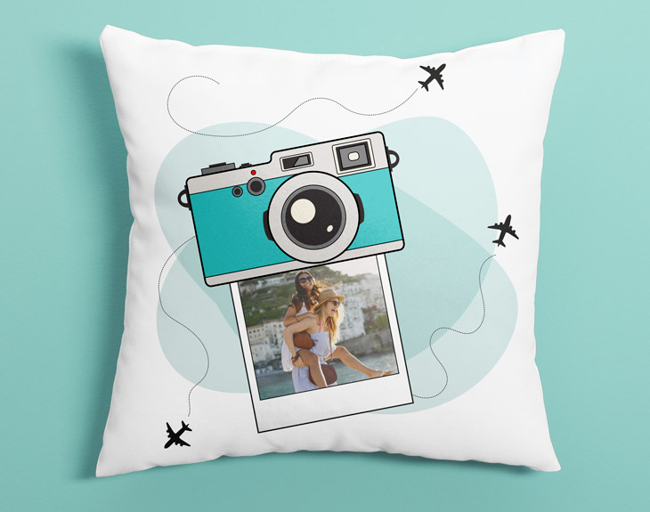 ¿Eres incapaz de recordar la cantidad de viajes que ha hecho en los últimos años? Si tú también tienes un amigo o amiga que se pasa el día recorriendo mundo y no aguanta en casa ni una semana seguida, este cojín personalizado tiene su nombre...¡Así te recordará esté donde esté! Solamente tienes que escoger una foto suya de ese viaje que marcó un antes y un después o de esa aventura que vivisteis juntos. Cada vez que se acueste a descansar con este cojín y vea la fotografía recordará los buenos momentos que pasasteis e inevitablemente se le escapará una sonrisa. Además, si es de esas personas que no puede vivir sin su cámara de fotos de la mano, este diseño le representa a la perfección. Y es que, no hay nada mejor que inmortalizar los mejores momentos para luego poder revivirlos una y otra vez. ¿No te parece una idea maravillosa?