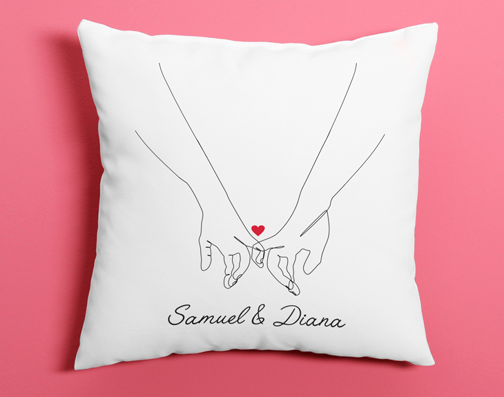 Para que una relación funcione, tiene que tener una serie de valores como respeto, complicidad, compromiso... Si tu relación tiene todas estas características y muchas más, está claro que nuestro cojín personalizado con diseño "Pinky promise" es ideal para vosotros. Se convertirá en un regalo muy original para cualquier ocasión especial como San Valentín, vuestro aniversario, un cumpleaños o simplemente para demostrarle todo tu amor. Este cojín personalizado es ideal para decorar el sofá del salón o para ponerlo en la cama. ¡Quedará genial! Será un recuerdo de lo más bonito y especial. Lo mejor que tiene es que es personalizable. ¡Podrás poner vuestros nombres en este cojín! Personalizar este cojín es súper sencillo. El primer paso a seguir consiste en añadir el producto la carrito y entrar al área de personalización. Una vez ahí, ya puedes escribir los nombres que tú quieras. Pronto estará perfecta y lista para regalar. ¡Será un regalo original para enamorados!