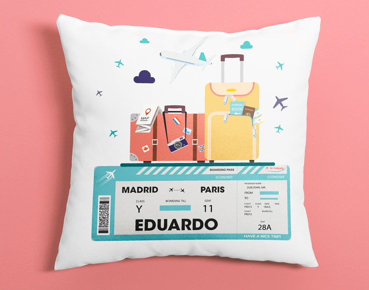¿Has preparado un increíble viaje para sorprender a tu pareja, a un amigo o a algún miembro de tu familia? Si quieres dárselo de la manera más original y divertida, este cojín personalizado con toda la información es una opción perfecta. Únicamente tienes que rellenar los datos necesarios para poder insertarlos en el diseño y podrás hacer el mejor regalo de todos. Y es que, seguro que estamos de acuerdo en que no hay nada mejor que regalar experiencias. Por eso, si estás deseando vivir esta aventura a su lado y añadir aún más recuerdos a vuestra colección de momentos, esta es una manera genial de demostrárselo. En cuanto lo vea se pondrá a preparar las maletas y a pensar en todo lo que tiene que hacer para organizar el súper viaje. ¡Estará deseando que llegue el día! Además, este cojín es perfecto para que se lo lleve y pueda descasar durante las horas de vuelo, de tren o de coche. ¡Le encantará!