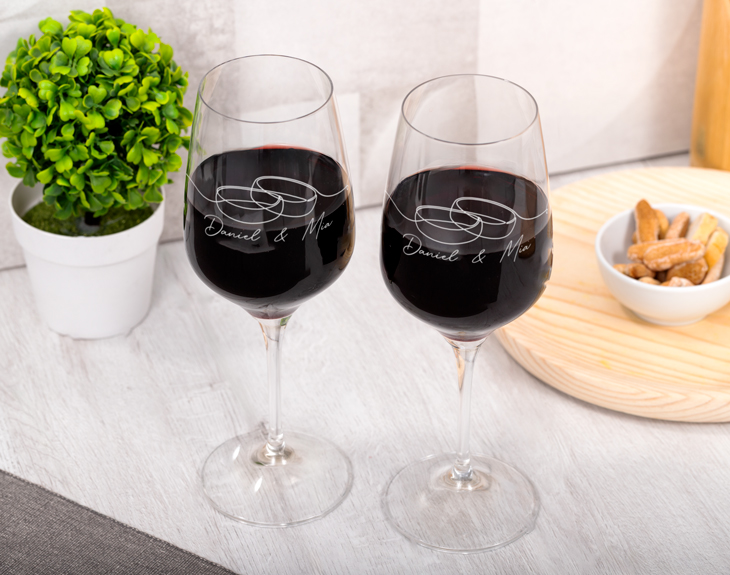 Una boda es dar un paso muy grande en una relación, decidir querer pasar el resto de tu vida con esa persona tan especial es de las cosas más bonitas que hay. Por eso, el amor siempre hay que celebrarlo por todo lo alto. Y nuestras copas de vino grabadas con diseño "Iniciales de amor" podrás celebrar este acontecimiento de la mejor manera, brindando por el amor. Se convertirán en un original regalo para esos novios que acaban de comprometerse, les hará muchísima ilusión. Lo más especial de estas copas de vino es que son personalizables, podrás escribir el nombre de los novios justo debajo de las alianzas del estampado. ¡Quedará genial! Personalizar estas copas de vino es súper sencillo. El primer paso a seguir consiste en añadir el producto al carrito y entrar al área de personalización. Una vez ahí, ya puedes escribir los nombre de los novios debajo de las alianzas. Pronto estarán perfectas y listas para regalar. ¡Será un original regalo para novios! Cada copa tiene una capacidad de 240 ml y un diámetro de 7.2 cm, el tamaño ideal para que resulte cómodo y funcional beber de ellas. Cómo cuidar tus copas: para mantener la belleza de tus copas por favor sigue las instrucciones con cuidado. Es importante evitar que sean expuestas a altas temperaturas. Lávalas siempre a mano, con mucho cuidado de no dañar los cristales. Seca con un trapo suave, sujetando la pieza por la parte superior. No aptas para lavavajillas. Capacidad de las copas: 240 ml
