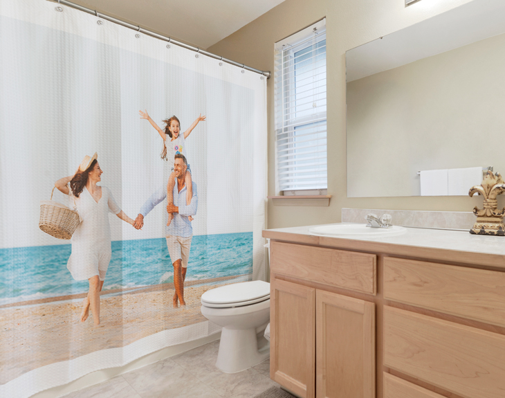 • Cortina de baño personalizada con tu foto. • Tarjeta Recordatoria.