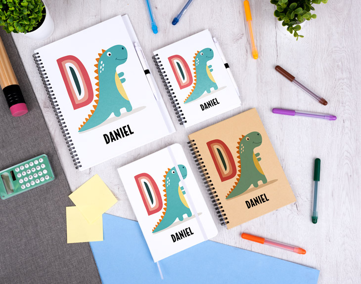 Cuaderno personalizado con la inicial de tu hijo o hija acompañada de su nombre y un divertido animalito. Será perfecto para la vuelta al cole, para actividades extraescolares o para cualquier otro proyecto en el que se necesite papel y boli. Disponible en cinco modelos, de diferentes tamaños y tipos de página. ¡Seguro que encuentras el que mejor se adapta a tus necesidades!