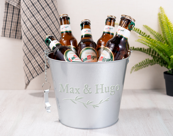 Prepárate para llenar este cubo de cerveza personalizado con hielo y monta tu propia barra para disfrutar con amigos y familia. Será uno de los mejores momentos de la boda: todos brindando con una cervecita bien fría para seguir bailando y disfrutando de la fiesta.